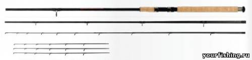 Длинна его идет от 3.00м до 3.60м.Тест до 120грамм,чего вполне достаточно для ловли как на средних реках так и на водохранилищах.